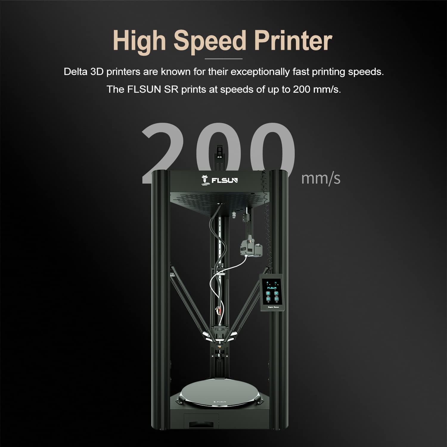 200mm/s High-Speed Printing & 2800+ mm/s² acceleration & Three-Axis Linkage Technology; Equipped 3 x 48W High-Power stepper motor and Three-axis linkage technology support a normal printing speed of Flsun Super Racer (SR) 3D printer up to 200mm/s and 2800+ mm/s² acceleration, enjoy instant high speed printing while maintaining the same molding precision quality, 200% faster than industry standard, you can save more than half of printing time.