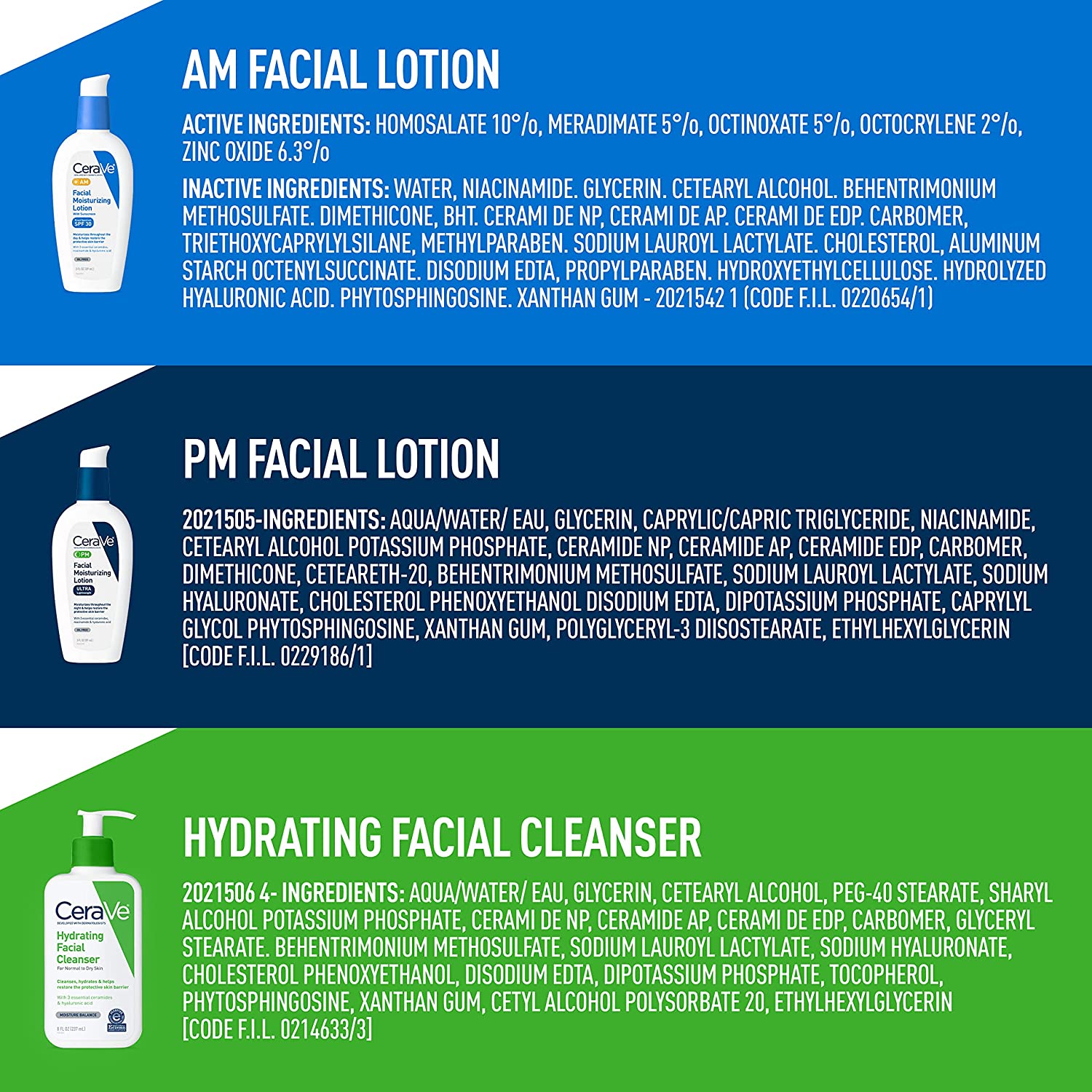 [ OIL FREE DAY CREAM & NIGHT CREAM & HYDRATING FACE WASH FOR TRAVEL ] Contains a full size 3oz CeraVe AM Facial Moisturizing Lotion with SPF 30, a full size 3oz CeraVe PM Facial Moisturizing Lotion, and a 3oz CeraVe Hydrating Facial Cleanser