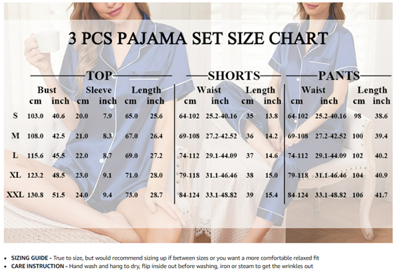 PREMIUM SILK STAIN FABRIC: Women's 3pcs satin pajamas is made of high quality 95% Polyester, 5% Spandex silk satin material. Breathable and stay cool on hot summer nights.Great for sleeping, casual wear or lounging around the house or yard all day.