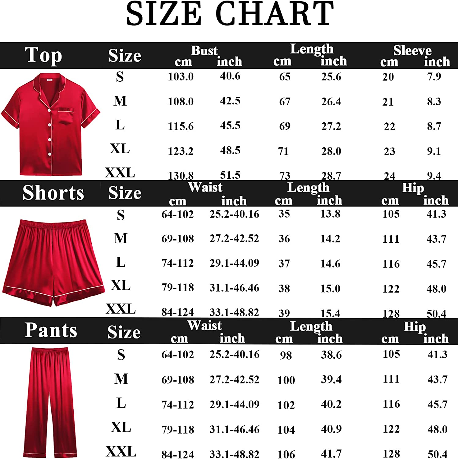 UNIQUE DESIGN & FEATURES: ?Button Front Pajamas Shirt with notch collar and one chest pocket design. ?Pajama Shorts for Women with soft elastic waist that fits for any body size and makes relaxing as comfort as possible.? Long Lounge Pants with two side pockets are convenient for you to carry small things like a phone, a wallet, keys. Loose fit for maximum free, sleep pants with superior stitching, perfectly-lined hems which is more classic. Perfect for sleepwear, nightwear or loungewear.