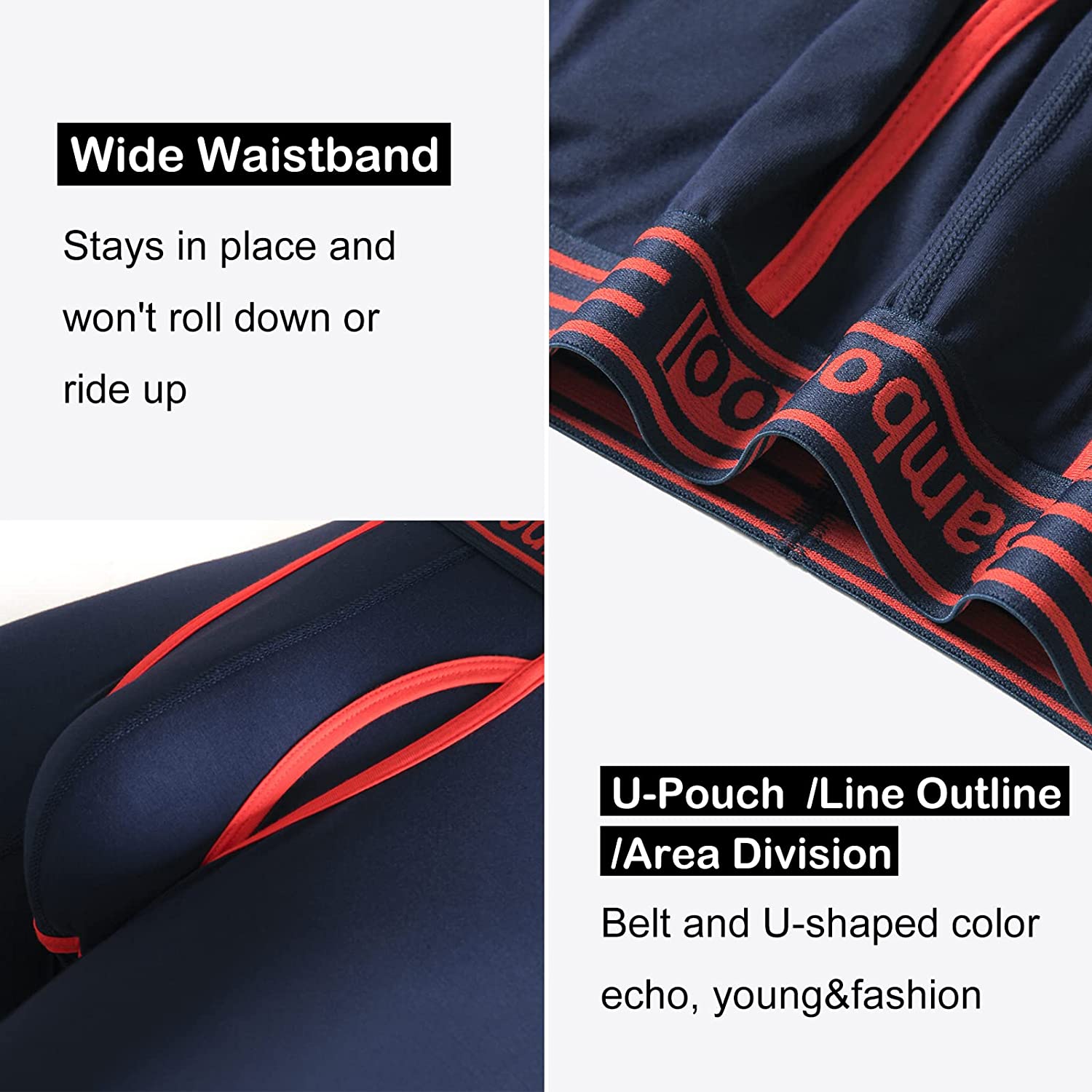 【NO-RIDE-UP LEG,BREATHABLE】: This fabric is 92% Bamboo Viscose & 8% Spandex, which is a lightweight, breathable, stretchy pair that won't fade or shrink fabric. Bamboo fabric has a natural moisture absorption and perspiration function, its air permeability is 3 times that of cotton.This is a kind of long leg boxer underwear.The design of lengthen the leg will more securely wrap the important parts of men, and effectively reduce the friction between the legs.