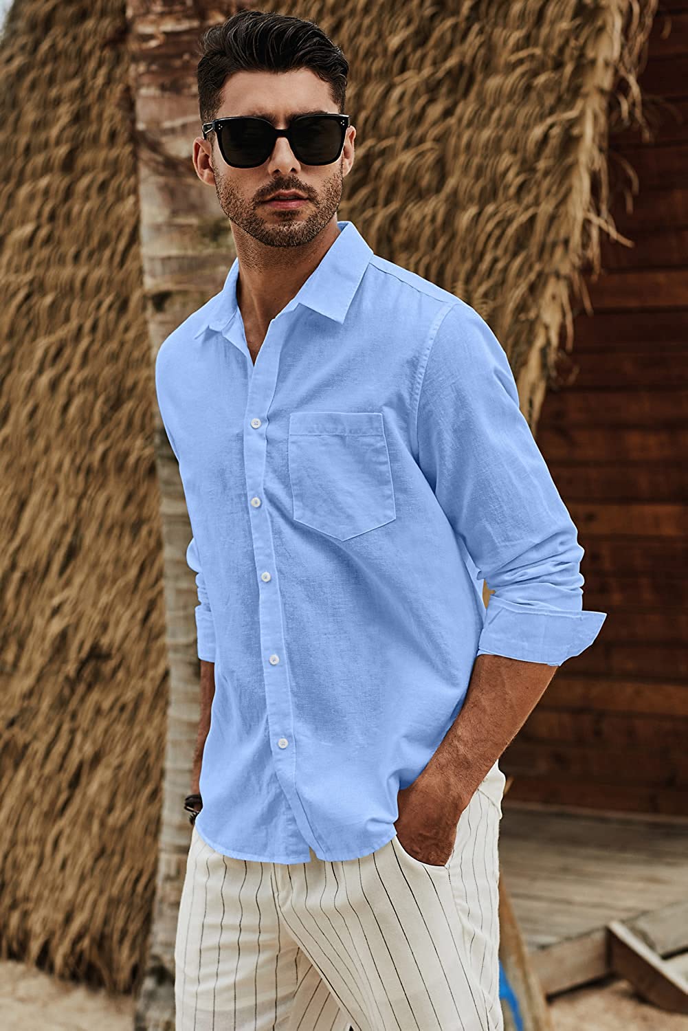 • Features: Cotton linen shirts for men, solid color button down shirts, cotton linen casual shirt, sleeve wear as 3/4 sleeves or full sleeve.