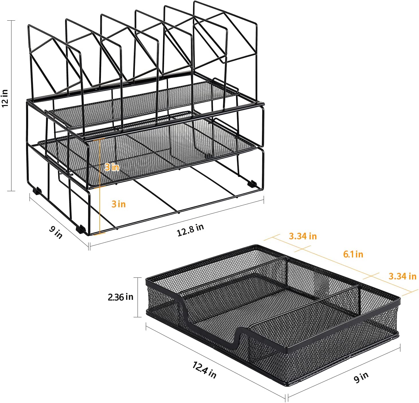 ?【EASY ACCESS】: The office organizer has 2 Letter Tray + 5 Upright Sections + 1 Sliding Drawer, which makes full use of your vertical and horizontal space, helps you quickly identify the contents of each compartment, and greatly improves your work efficiency.