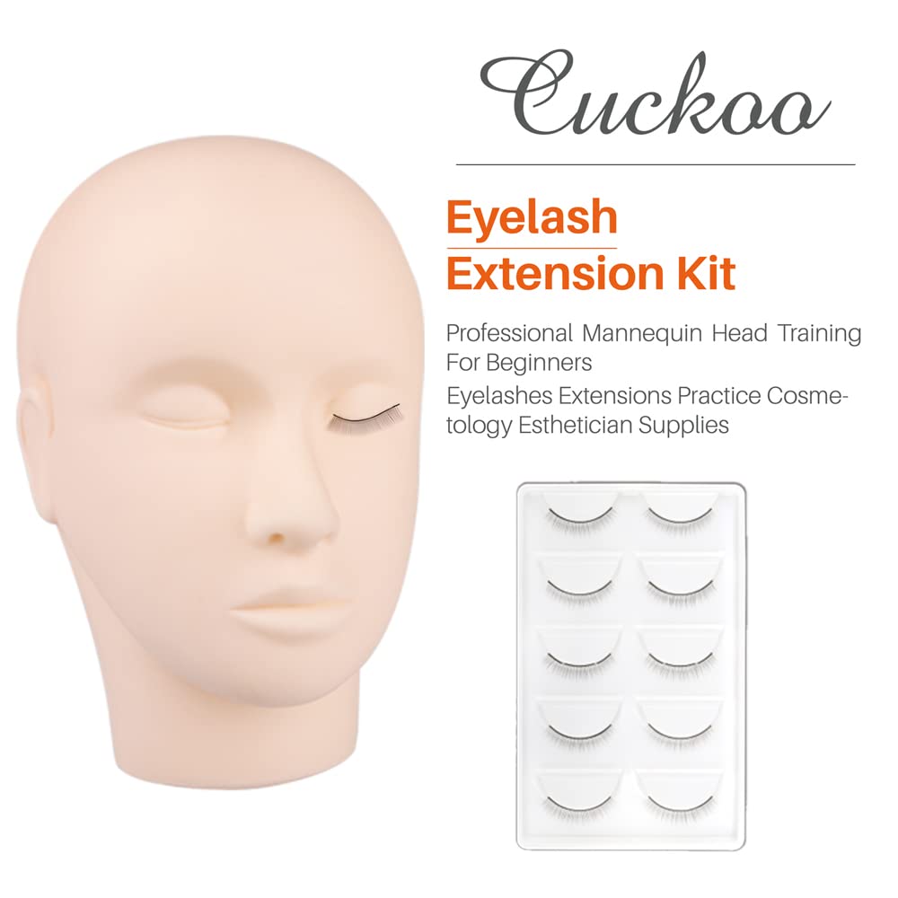 Cuckoo Eyelash Extension Kit,Lash Extension Practice Kit,Mannequin Head Practice Exercise Set Training Lash Extension Supplies for Beginners Include Mini Fan Lash Dryer,Eyelash Graft