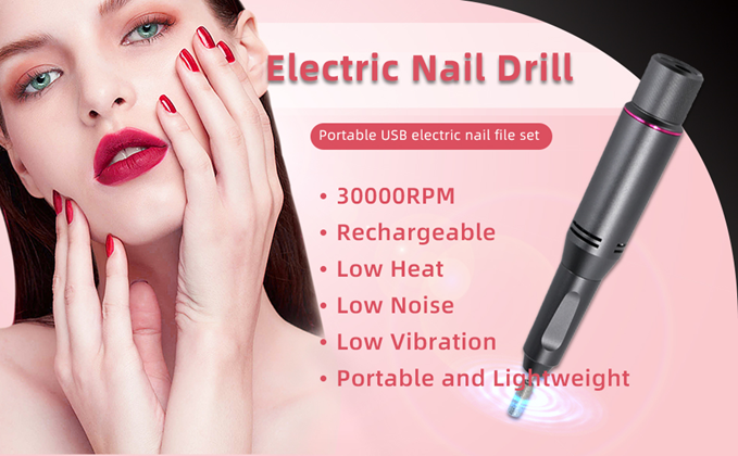 Fuegobird Electric Nail Drill Kit, Portable USB Nail File Tool for Acrylic Gel Nails, Professional Manicure Pedicure Efile Machine for Home and Salon, 30000 RPM with LCD Display Control