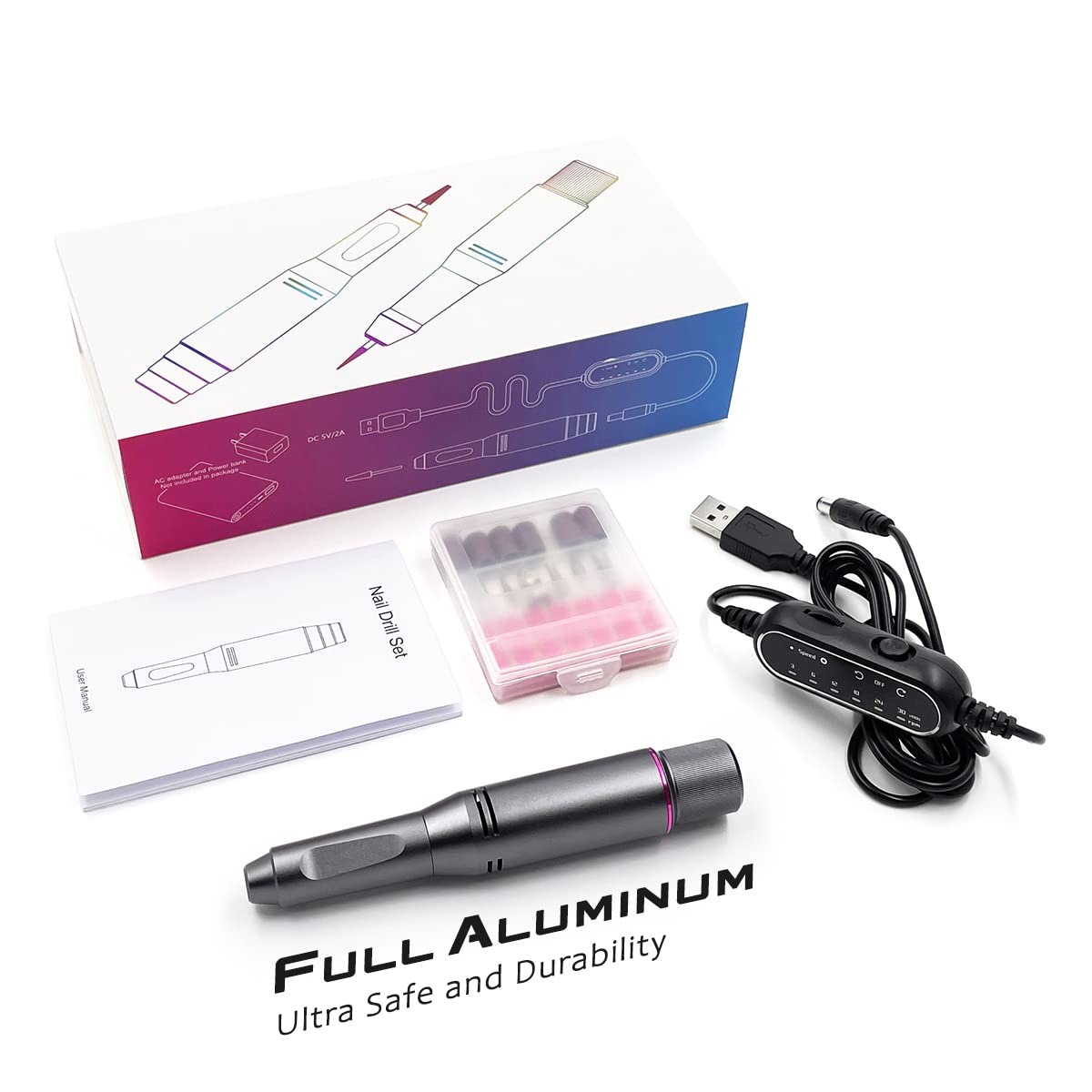 • Portable & Durable: Thanks to its compact and lightweight full-metal design. Fuegobird electric nail drill set is easy to carry with, allowing you to do nail art anytime, anywhere. You can power it with any USB socket, such as a power bank, laptop, or AC adapter.