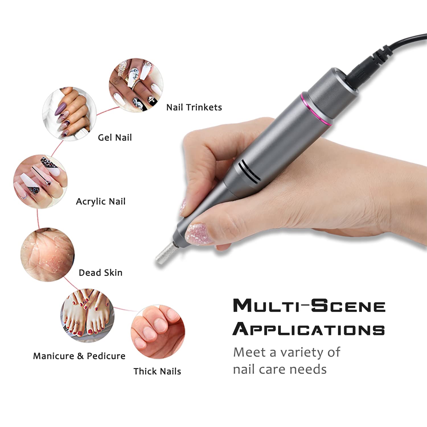 • Multifunctional & Portable Nail Drill Kit: Experience versatile nail care with this powerful electric nail drill kit. With Fuegobird electric nail drill, you can shape, buff, grind, polish, and remove acrylic, poly gel, artificial, thick, builder gel, dip powder, fake, and natural nails, as well as dead cuticles with ease. Suitable for manicure and pedicure beginners and pros.