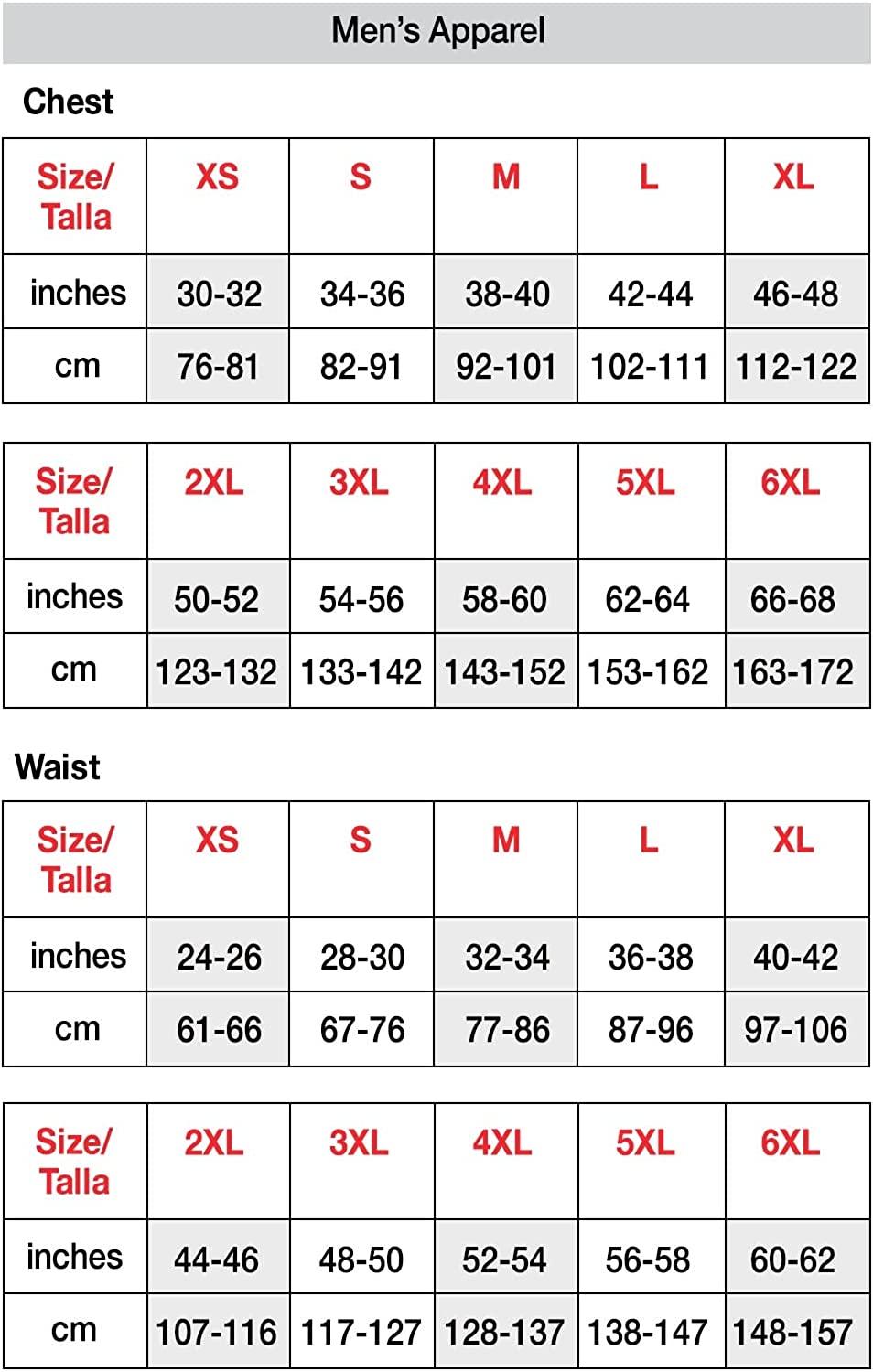 Available in sizes Small, Medium, Large, X-Large, 2X-Large, 3X-Large and 4X-Large.