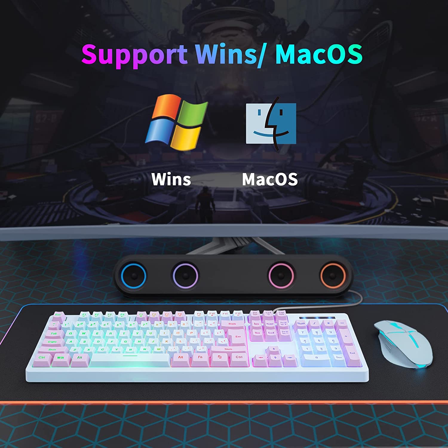 • Wide Compatibility and Ergonomic design. Compatible with Windows 10, Windows 8, Windows 7, Windows XP, Windows VISTA, Mac OS, etc. Ergonomic design: the stepped keycap makes it sleek and thearc and slope fit your hands easily to prevent fatigue.