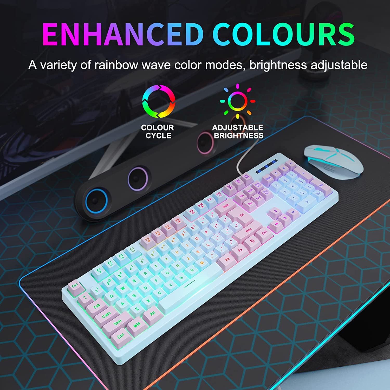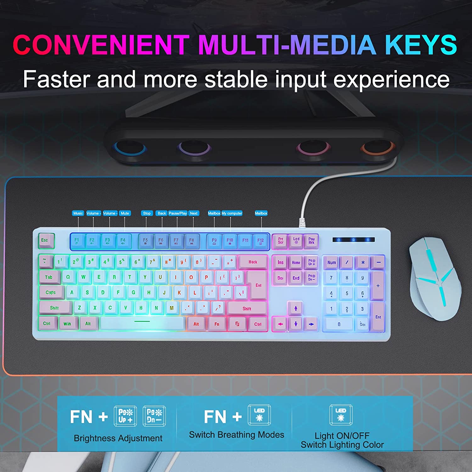• Colorful Illuminated Keyboard. Rainbow color lighting backlit modes, breathing. It can be great for playing the game at night even without light. You can also adjust the brightness of the backlit according to your preference. Light can be turned off.