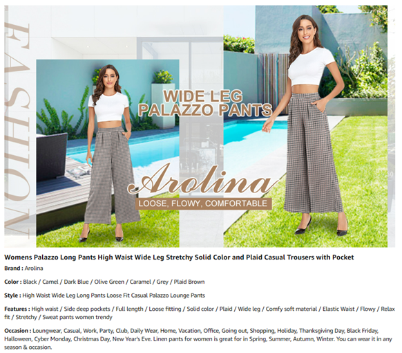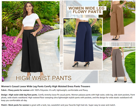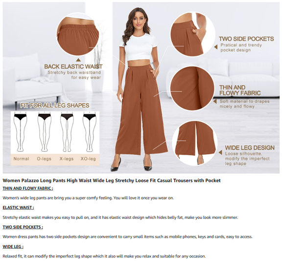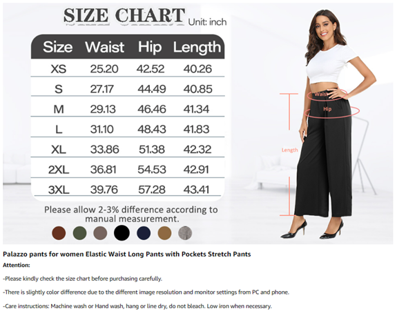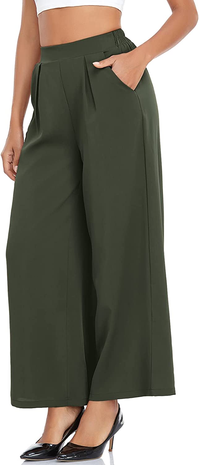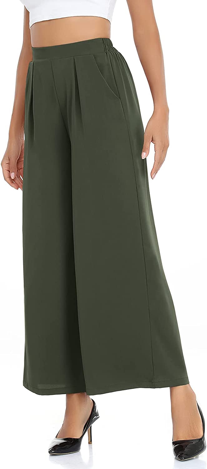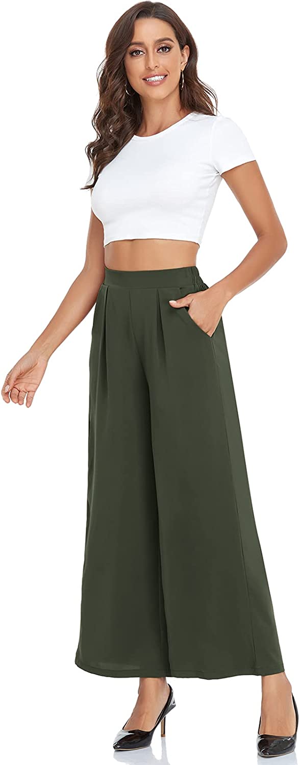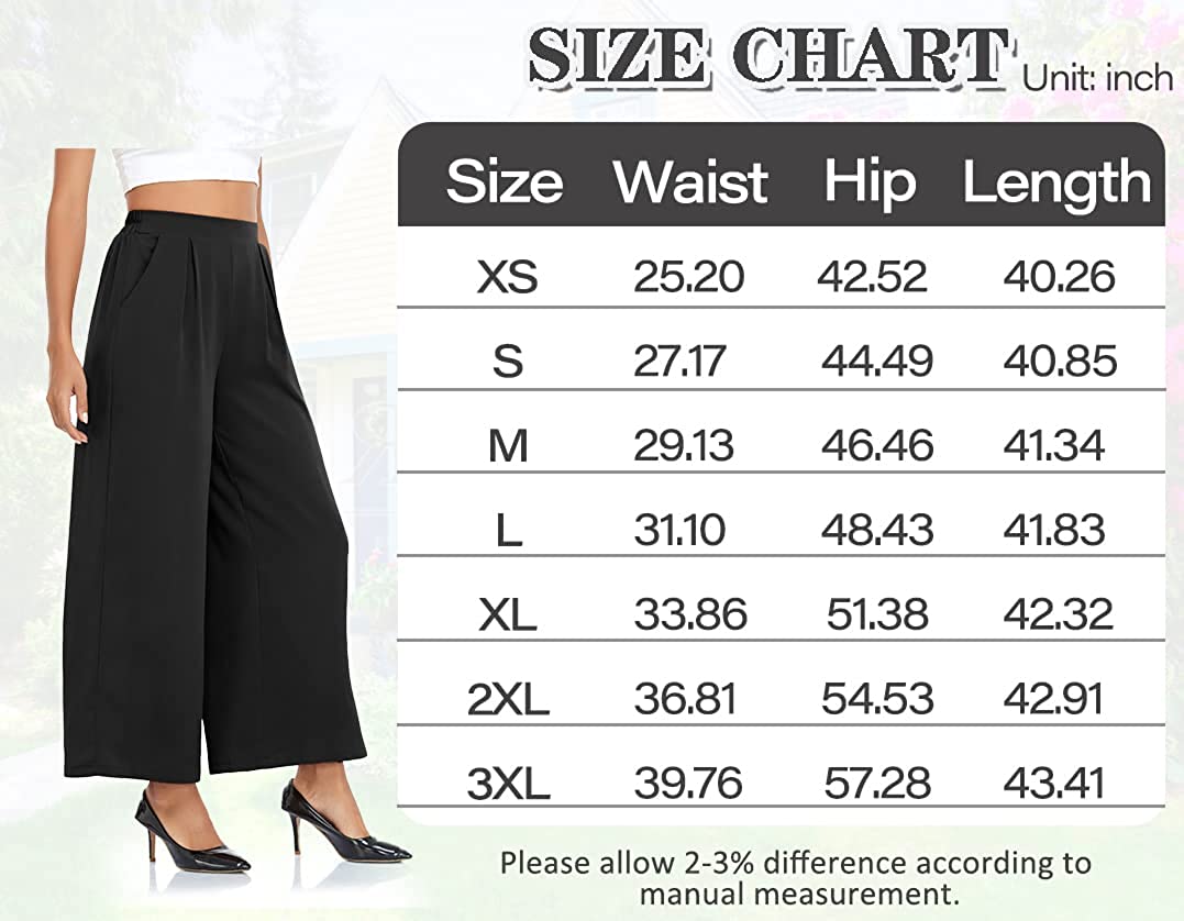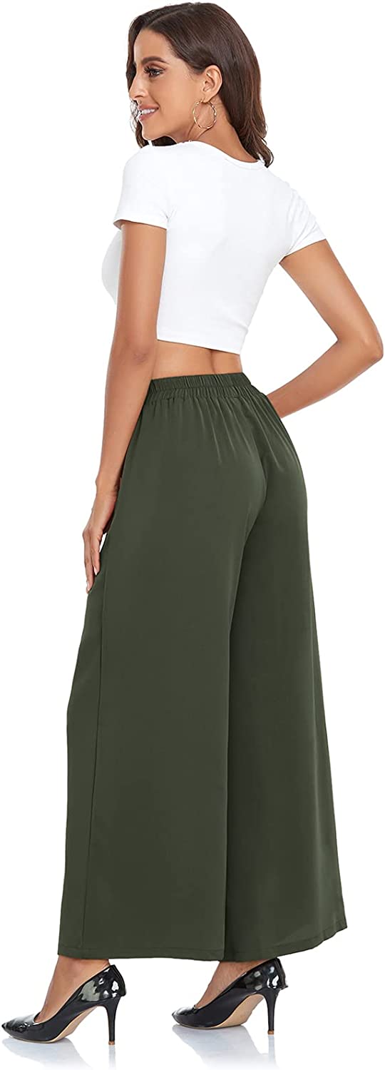 • Material : Wide leg pants for women is made of 100% Polyester, palazzo pants is so soft, comfortable and wrinkle free. Womens wide leg pants is stretchy and lightweight, comfortable to wear all the year around.