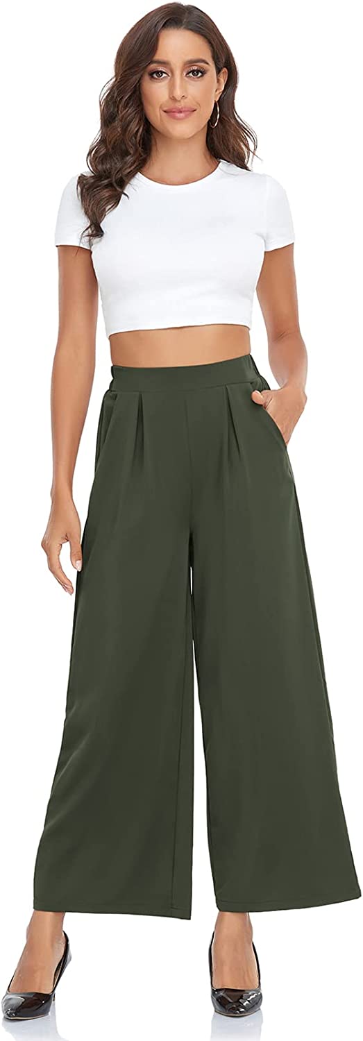• Unique Design : High waisted pants for women, Deep Side pockets, Front Pleats, Back Darts, Elastic Wasitband, Wide Leg Pants for Women. Flowy pants for women make you look more atmospheric, modify the imperfect leg shape, and hide the belly fat.