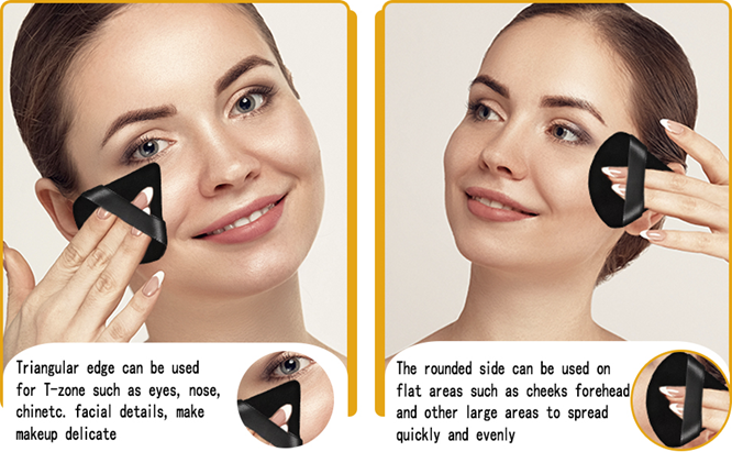 【Ergonomic Design】Our Powder Puff Is Actually Designed With Triangle And Circle Style,When You Put The Foundation On Your Cheeks And Forehead,You Can Use The Round Side, When You Put Foundation On The Eye, You Can Choose The Triangle Side,And You Won't Have To Worry About The Uneven Makeup