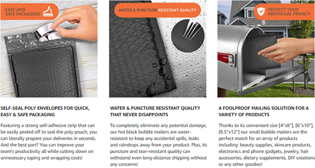 - WATERPROOF, TEAR-RESISTANT & EXTRA DURABLE: No matter what destination your parcel has to reach, our waterproof, puncture-resistant and ultra-durable padded envelopes will keep your deliveries securely wrapped at all times. Their waterproof quality also prevents potential damages from accidental spills, thus eliminating customer complaints. Plus, our black mailing pouches are so cute that any recipient will appreciate how adorable they look!