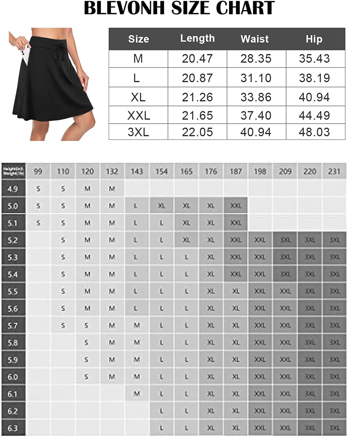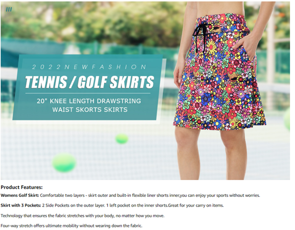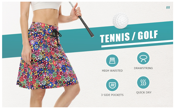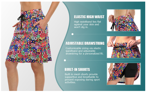 2-in-1: The Womens Knee Length Skirts with outer&inner layers keeps your underwear hidden as you bench and stretch without worries about exposure.