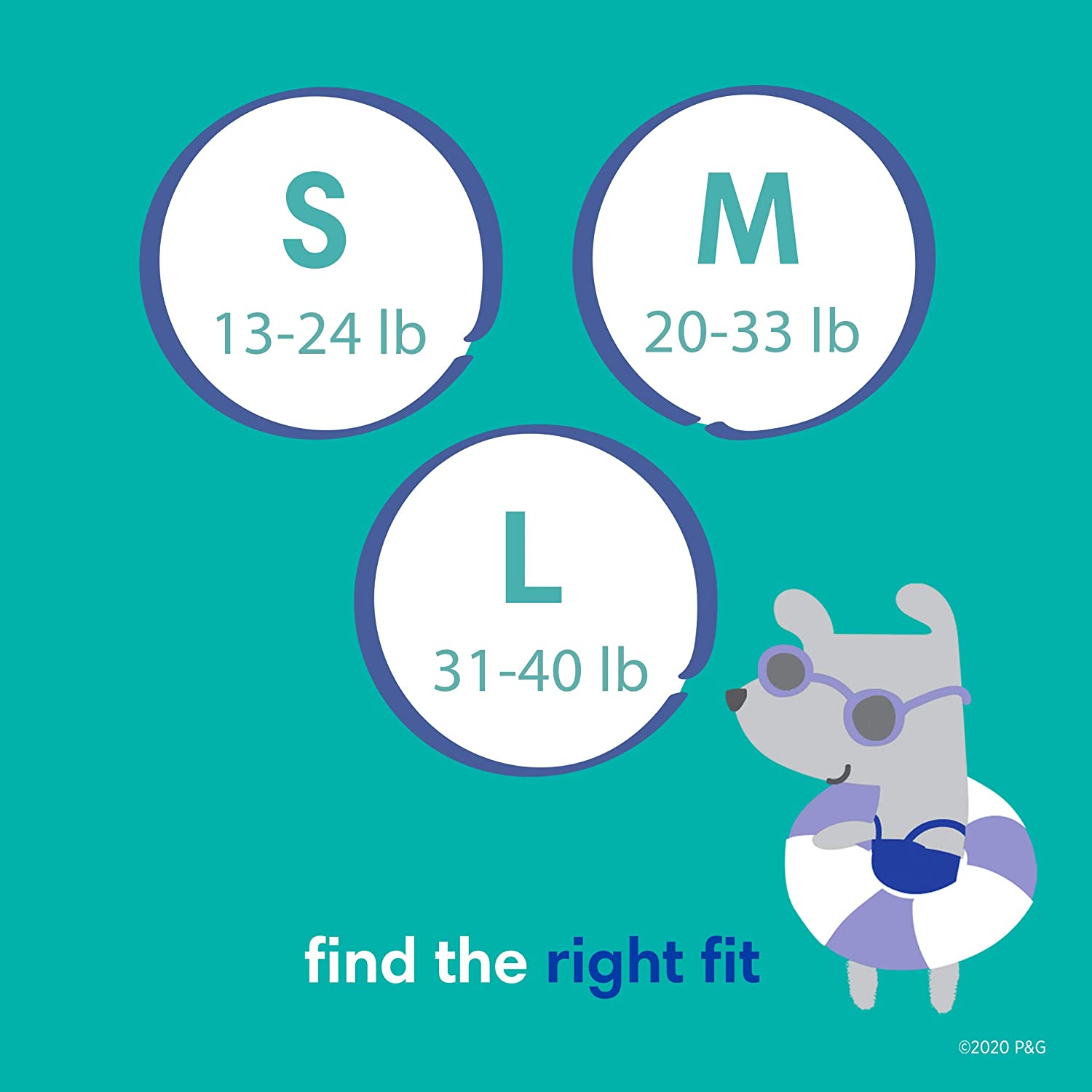 Your baby is free to make a splash in Pampers Splashers disposable swim diapers! Pampers Splashers don’t swell in water like regular diapers, giving your baby a comfortable fit when wet or dry. For secure protection in the water, Splashers Dual-LeakGuard BarriersTM fit snug around your baby’s legs to help contain messes, making them perfect for the pool, beach, splash park, and more. Only Pampers Splashers are designed with a 360° all-around stretchy waistband that fits like swimwear and easily pulls on and off—even when wet. Plus, Splashers are equipped with Easy-Tear Sides for a quick disposal with less mess, and our adorable, swim-inspired, all-over graphics look like real swimwear. Pampers Splashers make a day at the pool even more fun.