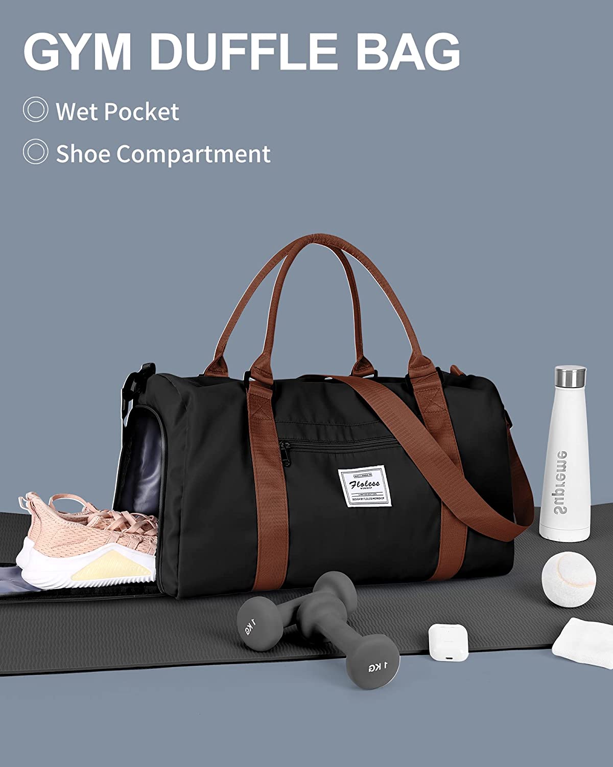 Gym Bag Womens Mens with Shoes Compartment and Wet Pocket,Travel Duffel Bag for Women for Plane,Sport Gym Tote Bags Swimming Yoga,Small Waterproof Weekend Overnight Bag Carry on Bag Hospital Holdalls