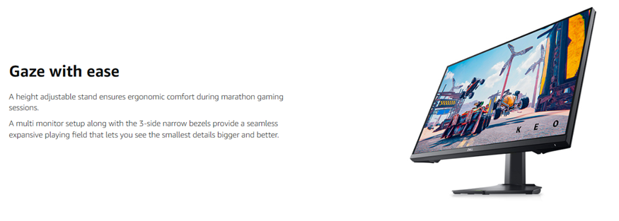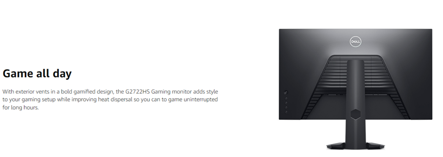 Dell G2722HS IPS 27-Inch 165 hz Gaming Monitor is engineered with an LED edgelight system, 99% sRGB color gamut and 3-sided bezeless design. With a 1ms response time that minimizes motion blur, and a 165Hz refresh rate for faster reaction times, you can play your best. Furthermore, AMD FreeSyncPremium and NVIDIA G-Sync compatibility are built-in, ensuring seamless and tear-free gameplay. A 27-inch FHD screen with a 1920x1080 resolution provides a crisp and detailed gaming experience. Furthermore, the fast IPS panel technology, which supports 99 percent sRGB, provides breathtaking clarity and consistent colors from every angle, and built-in TUV low blue light hardware solution that reduces harmful blue light without sacrificing true-to-life colors, allowing you to remain fully involved in the game. A height adjustable stand ensures ergonomic comfort during marathon gaming sessions.