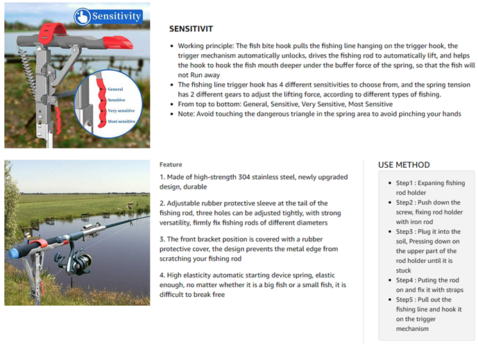 • 【Automatic Fishing Rod Holder】 The automatic spring fishing rod holder has high sensitivity. When the bait is bitten by the fish, the automatic spring device is triggered. The fishing rod holder immediately automatically pulls up the fishing rod without manual operation, freeing your hands and enjoying the fun of fishing easily!