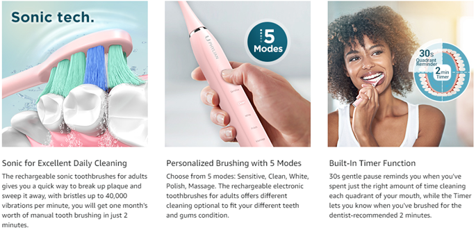 PHYLIAN offers a powerful, durable, and easy-to-use rechargeable electric power toothbruhes for adults.