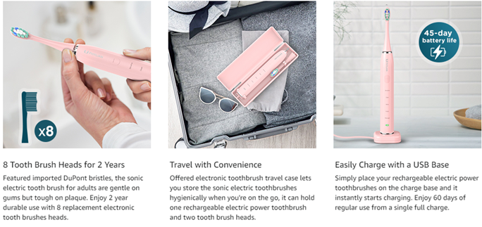 1. The PHYLIAN electronic sonic toothbrush for adults is more durable than similar power toothbrushes for adults with 8 premium DuPont tooth brush heads, that will last for a full 24 months.