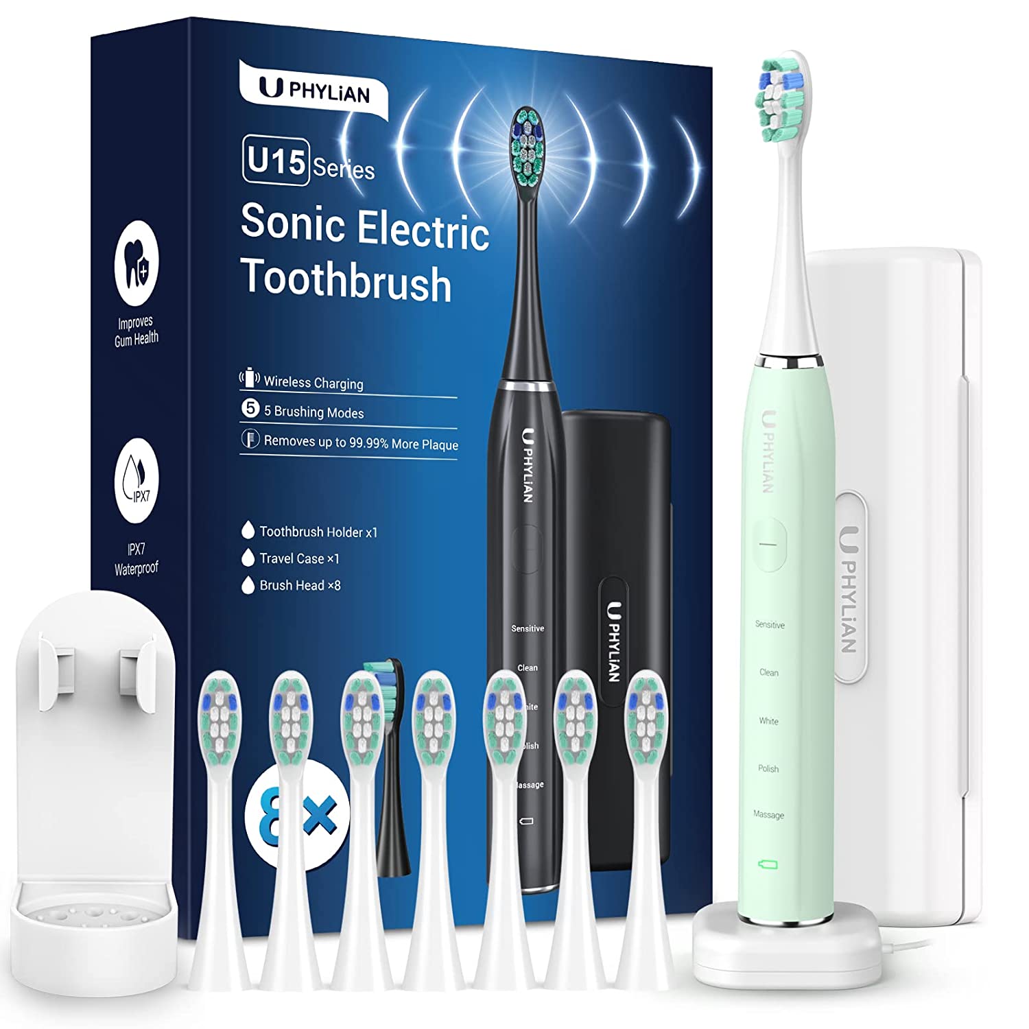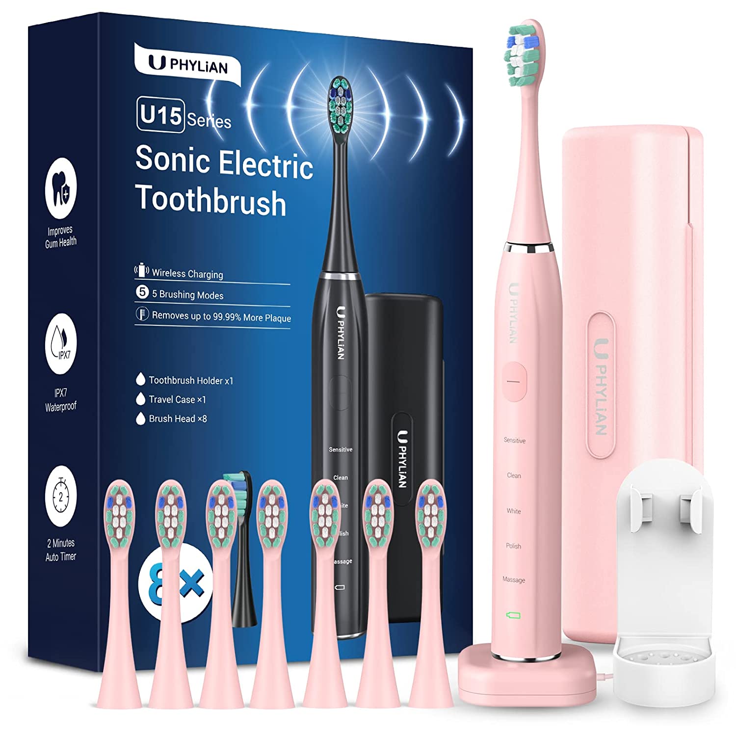 PHYLIAN Sonic Toothbrushes for Adults, Rechargeable Electric Power Toothbrush with 8 Tooth Brush Heads, Travel Toothbrush Case and Tooth brush Holder