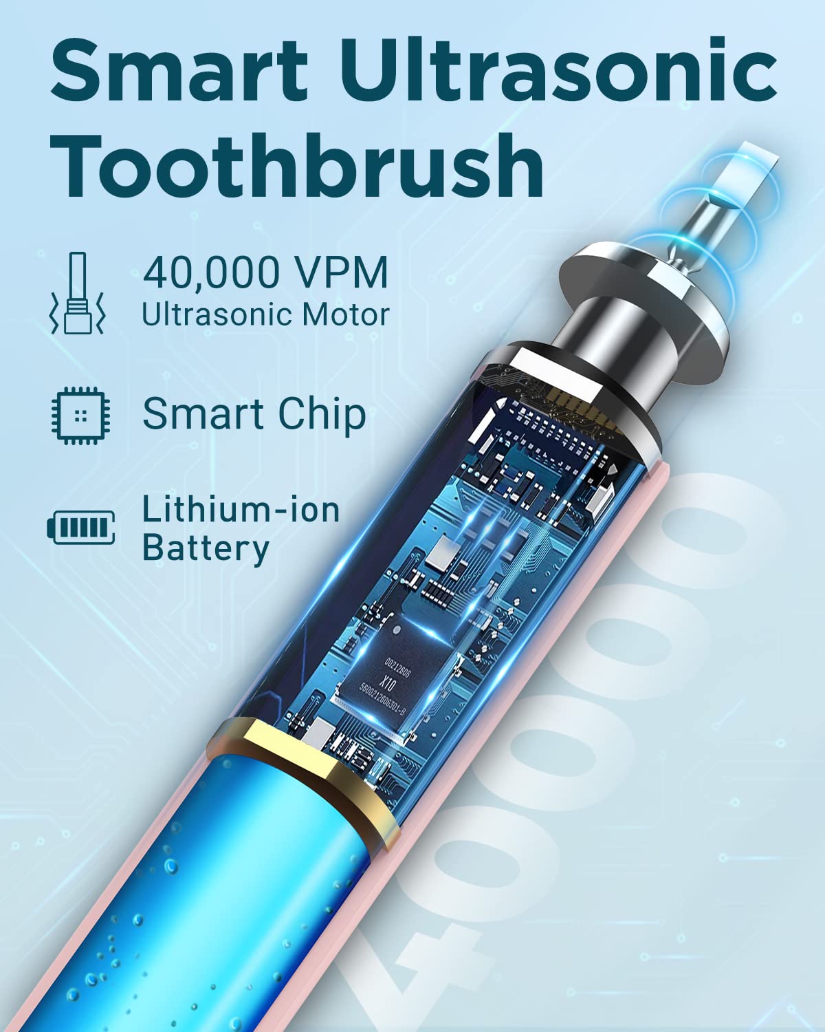 • Smart Timer for Brushing Thoroughly: With a gentle pulse reminds you to change to a new quadrant of your mouth, and signals when 2 minutes of brushing time is up. This smart sonic electric tooth brush for adults guides you to brush for the dentist-recommended time in all areas of your mouth to ensure a complete clean.