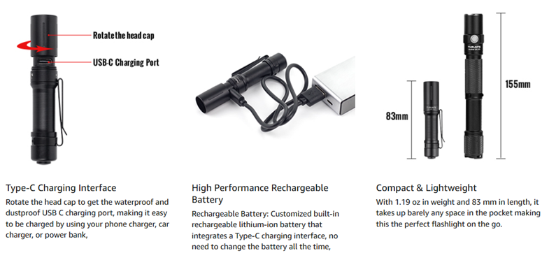 | Included Components | ThruNite battery *1(Built-in), USB-C Charging Cable *1, Pocket clip *1 |