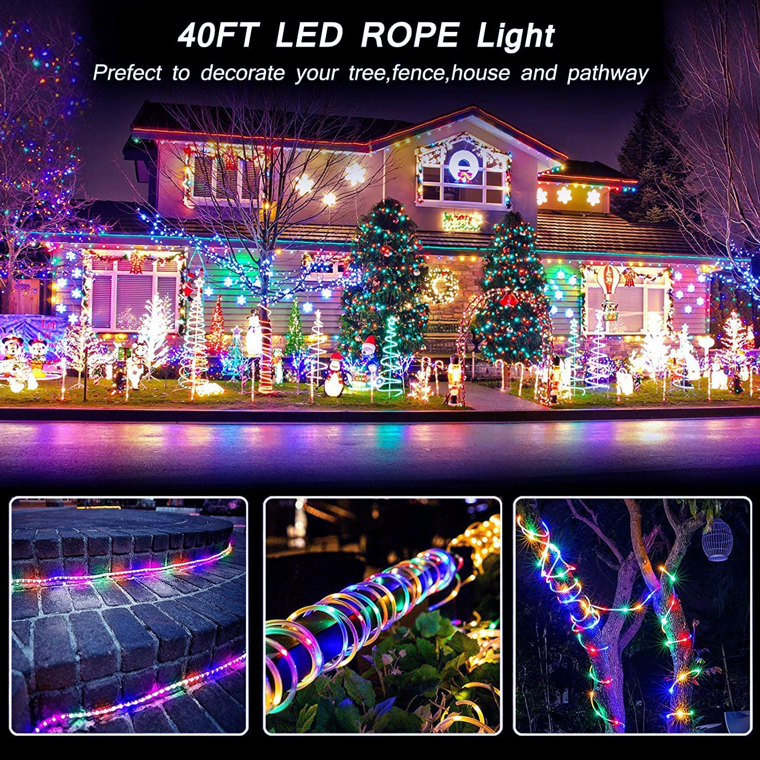 Aigleya Solar String Lights LED Rope Lights,40Ft 120 LEDs Solar Outdoor Lights 8 Modes Color Changing Solar Fairy Lights Waterproof Outdoor String Lights for Christmas Party Camping Décor…