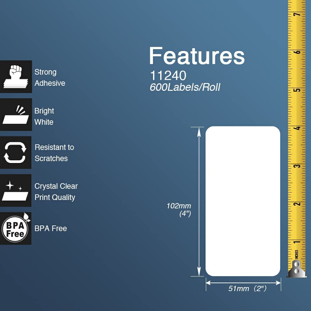 Replaces: DK1240, Dimensions: 23mm*23mm(10/11" X 10/11"), Colour: White, 600 Labels per Roll.