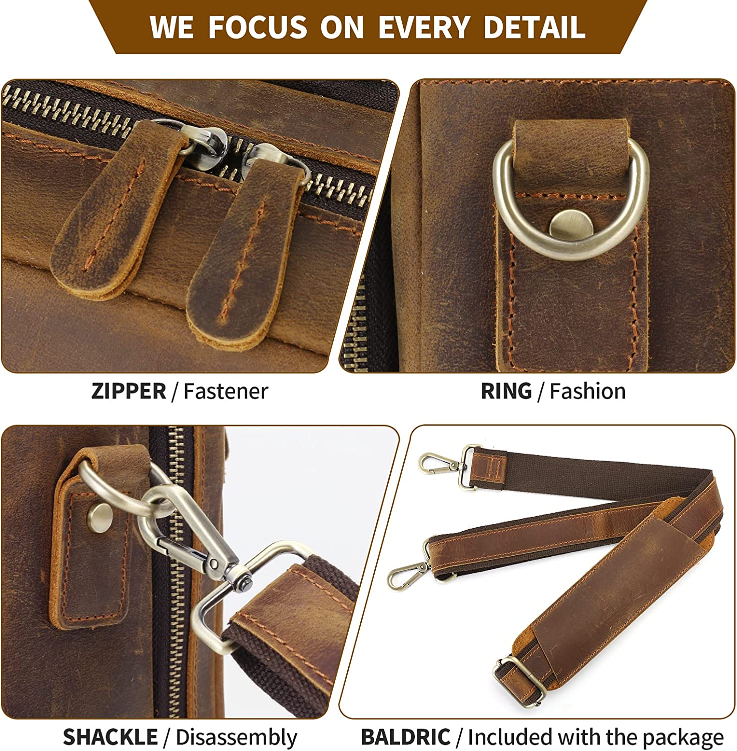 • Multifunction Mens Messenger Bag: The structure of this men’s brown leather messenger bag: 2* large main pocket, 1* front pocket with zipper handle (used to store letter cards, etc.) iPad's large space), 1* rear pocket with zipper handle (used to store work documents or contracts), 1 inner zipper pocket, 1* 17.3 inch padded laptop compartment.