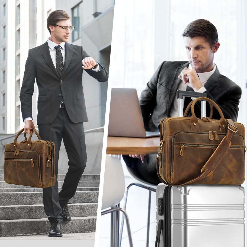 Ringsun Leather Briefcase for Men Large Satchel Bags, Mens Business Travel Case Messenger Bag, Fits 15.6" Leather Laptop Bag