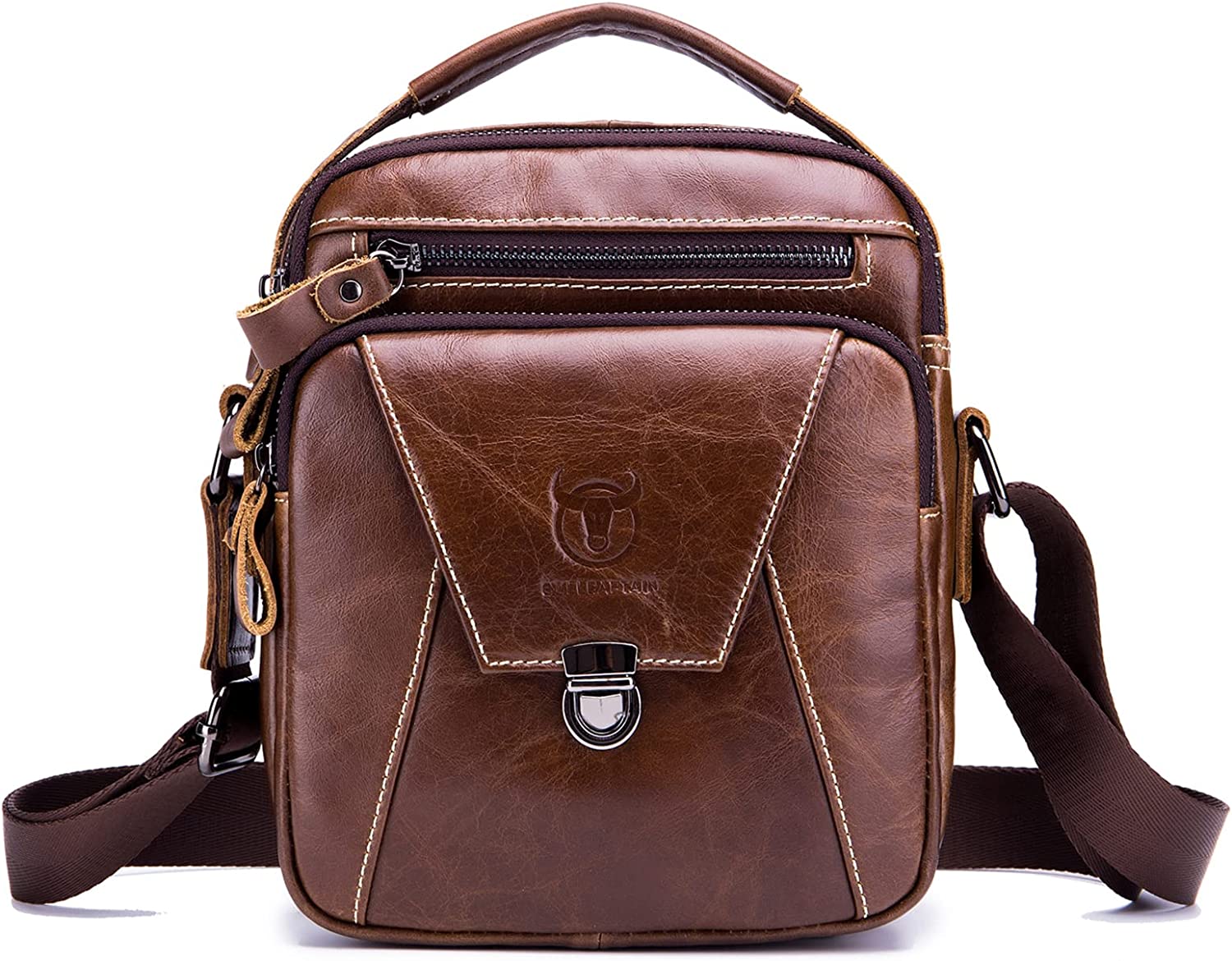 LUKZIJAES Genuine Leather Shoulder Bag Men Messenger Handbag Sling Crossbody Bag for Business Everyday Casual Travel