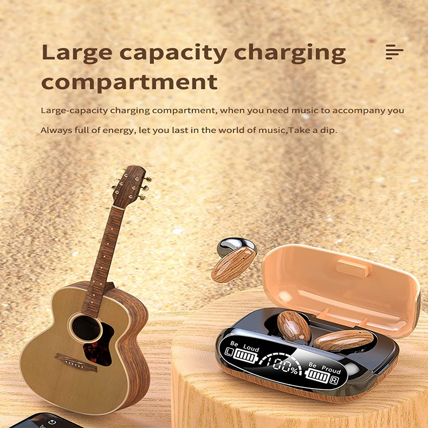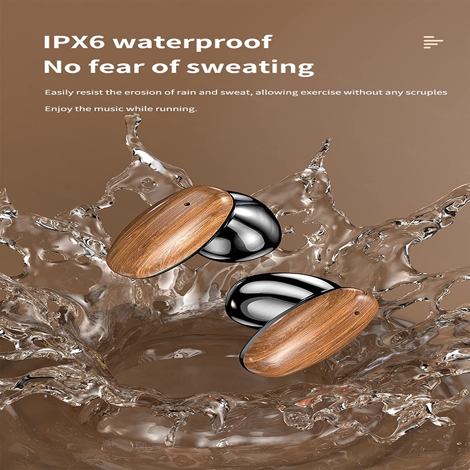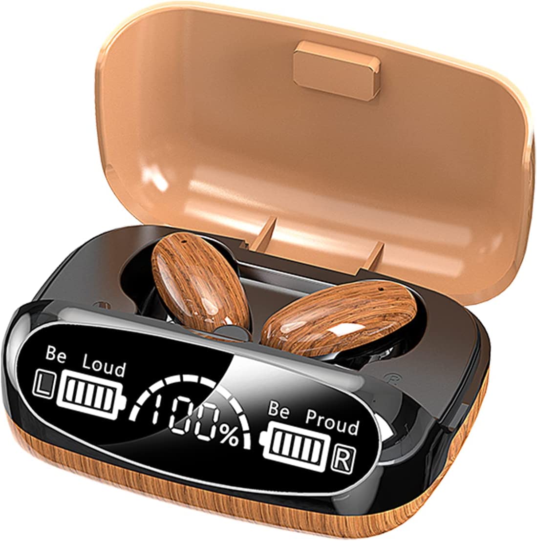 • [Retro wood grain body, mirror LED digital display, smart touch] Compared with the cold touch of plastic or metal body, it has a warmer atmosphere, natural retro wood grain, simple and elegant. The LED mirror digital display screen is atmospheric and aesthetic, and can know the charging progress of the headset and the remaining power of the charging compartment in real time. Abandon the key operation, just touch your finger lightly, all kinds of shortcut operations are on your fingertips.