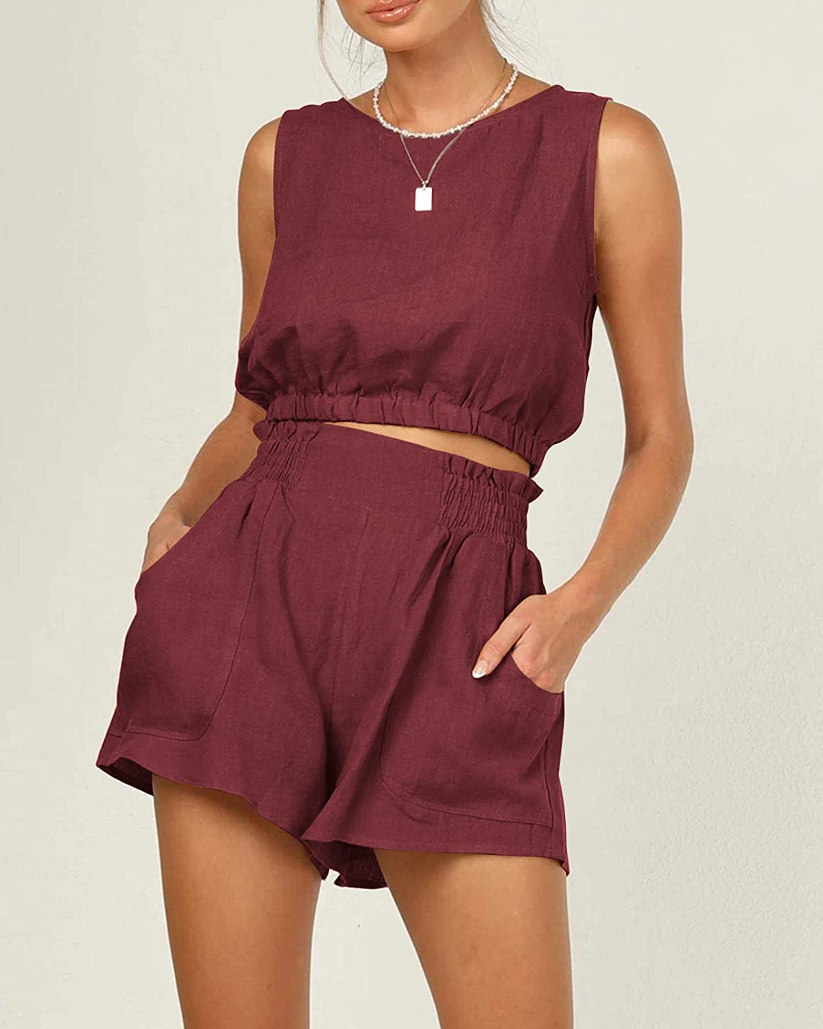 Material:This summer two piece sets for women is made of 30%Linen 70%Rayon, soft and lightweight cotton linen material, which is breathable and skin friendly to take you cool and cozy feeling, to enjoy comfortable vacation and sleep.