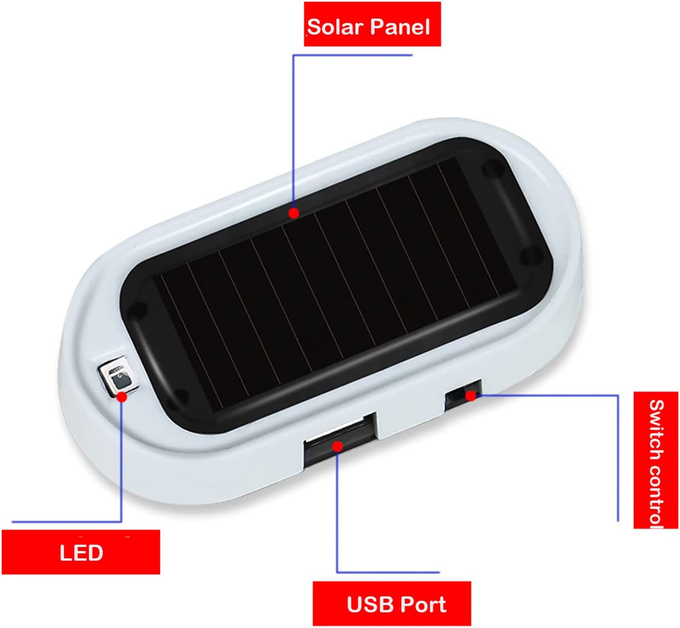 No Battery Needed Car Security Anti-theft Lamp - Solar energy can be absorbed and saved in high efficiency solar cells. No need install battery. It's powered by solar. It can blink for whole night after enough sun shining in daytime. If sunshine not enough, it can get power by USB charger.