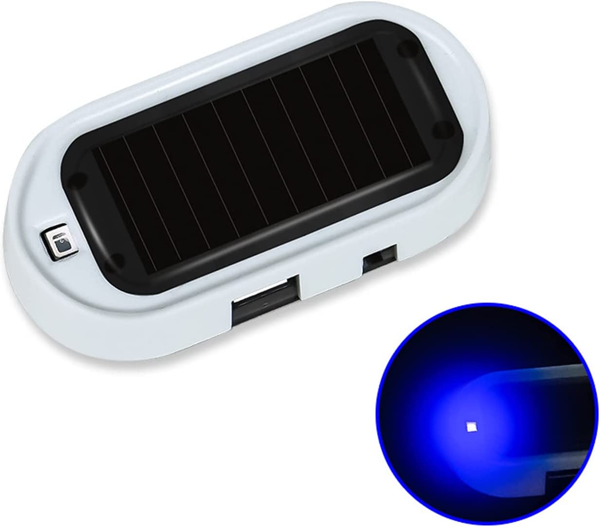 NKIA 2PCS Solar Power Fake Car Alarm LED Light, Simulated Dummy Warning Anti-Theft LED Flashing Security Light, Car Alarm System Lamp with USB Port, Blue & Red Light (Black)