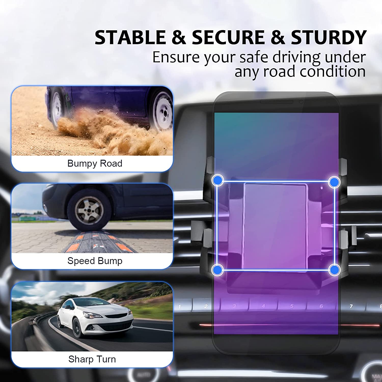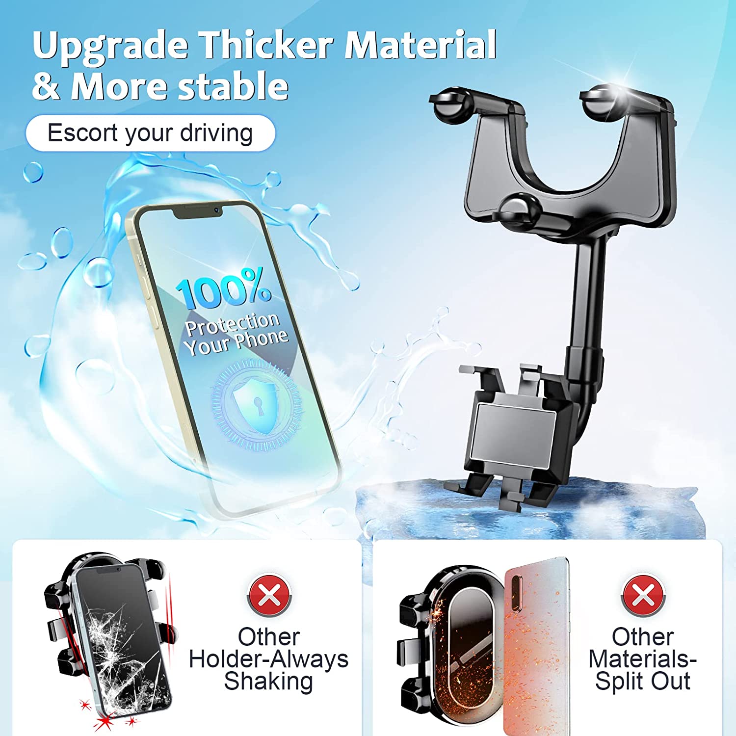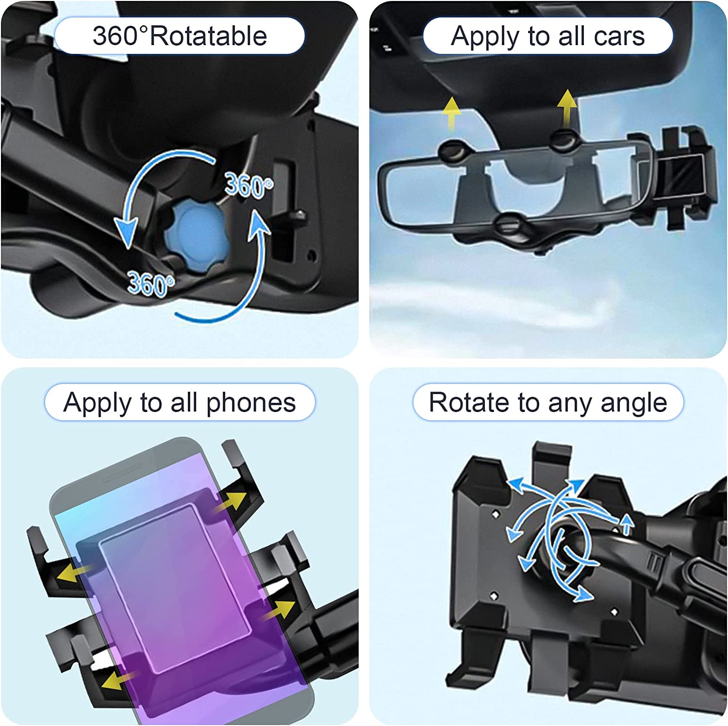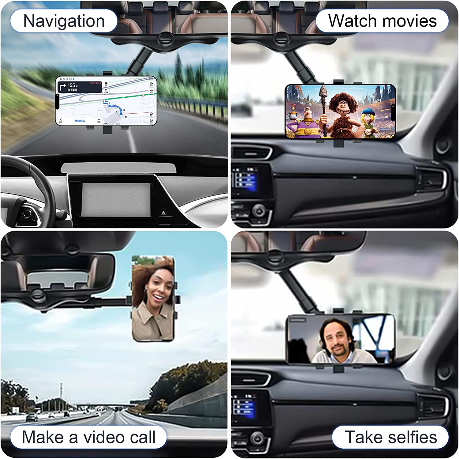 • ROBUST AND DURABLE: The four-claw design of our rearview mirror accessories can firmly fix the phone in place no matter how rough the road is. Suitable for all mobile phones and all models.