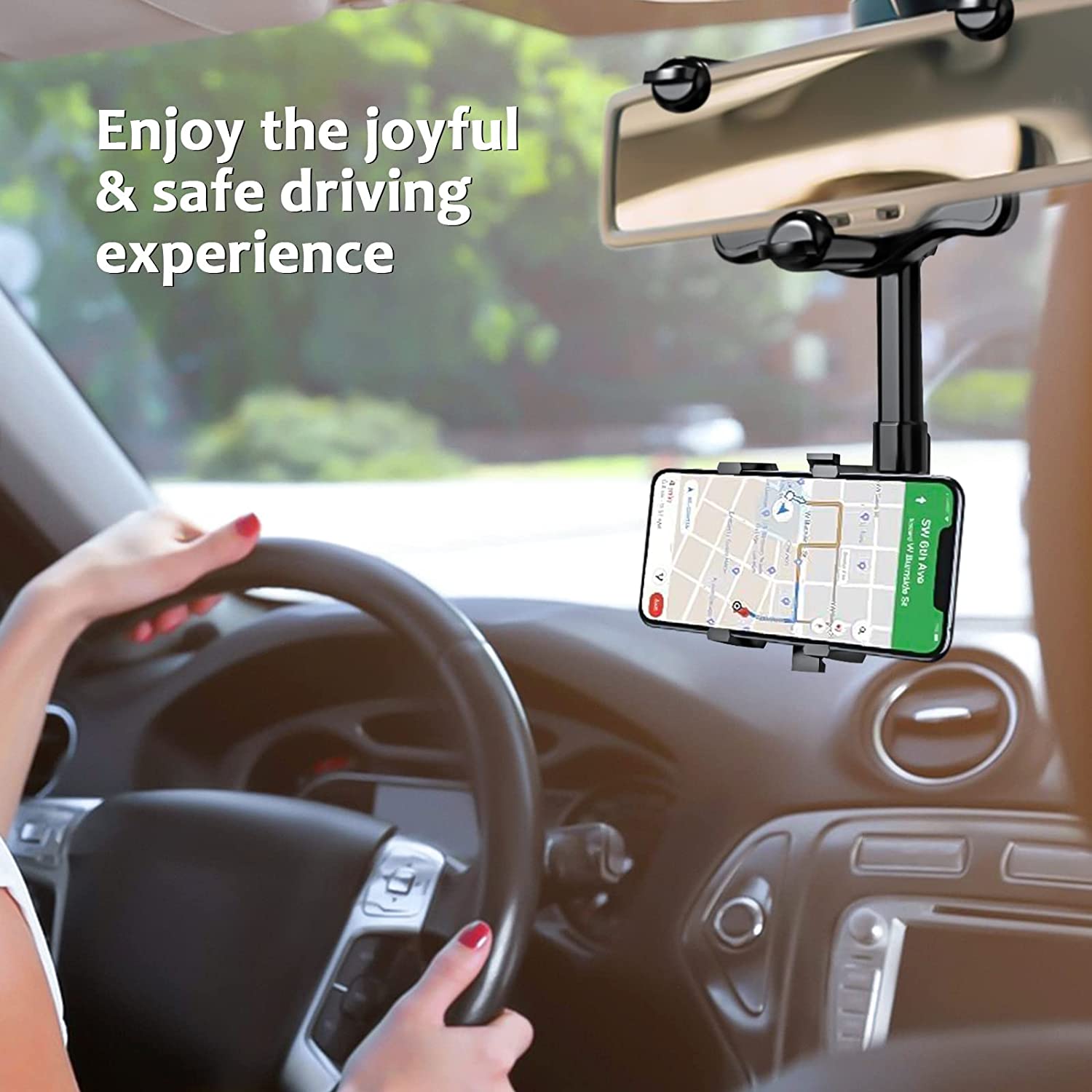 • SFAE CAR ACCESSORIES: The car phone holder is installed on the car rearview mirror and kept level with it to keep your sight on the road. No need to look down at the navigation, you can get a more comfortable and safer user experience with this mobile phone holder.