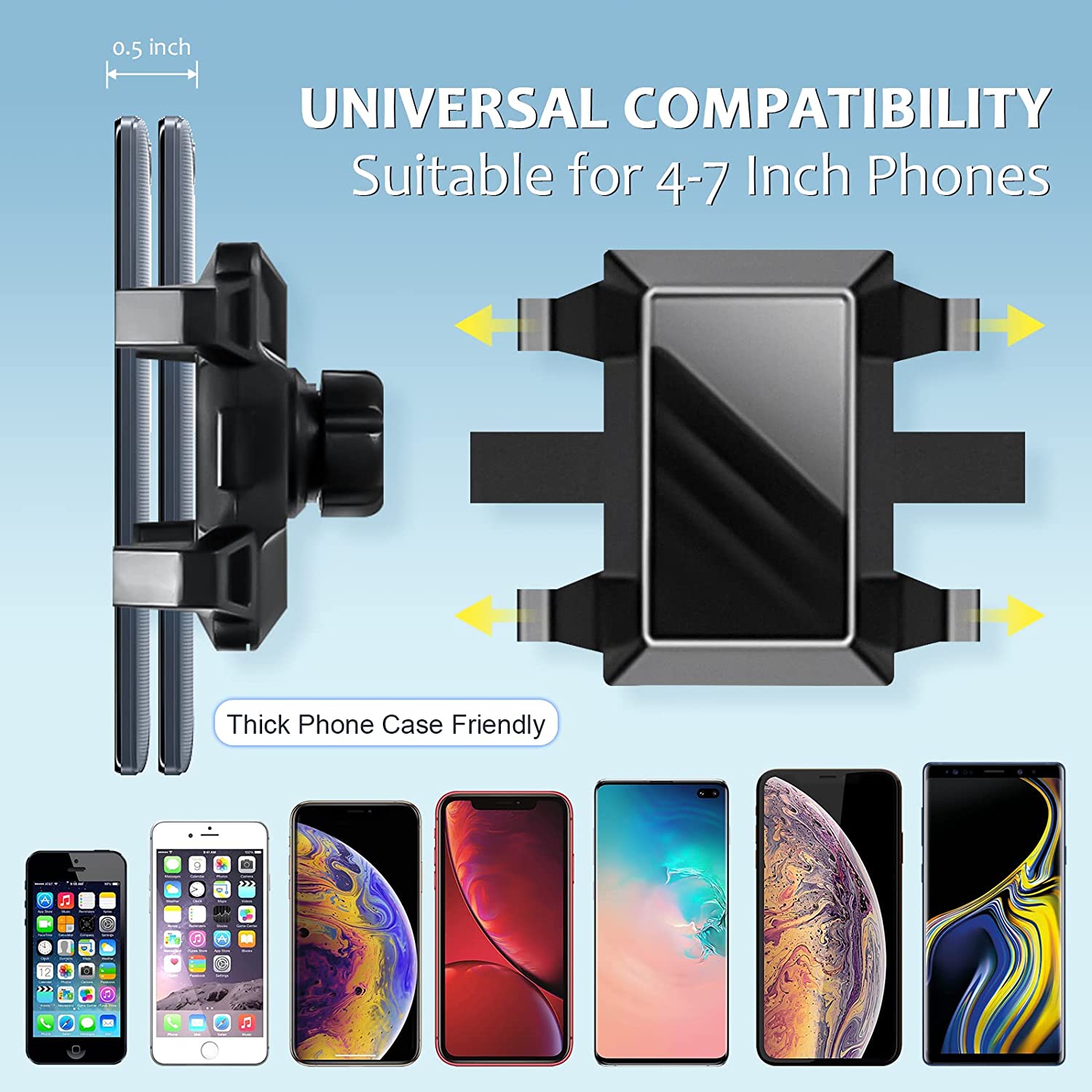 • COMPATIBILITY TIP: Please check whether it conforms to your rearview mirror size before purchasing. The phone holder can be adjusted according to the width of the phone and is compatible with any 4-7 inch phone.