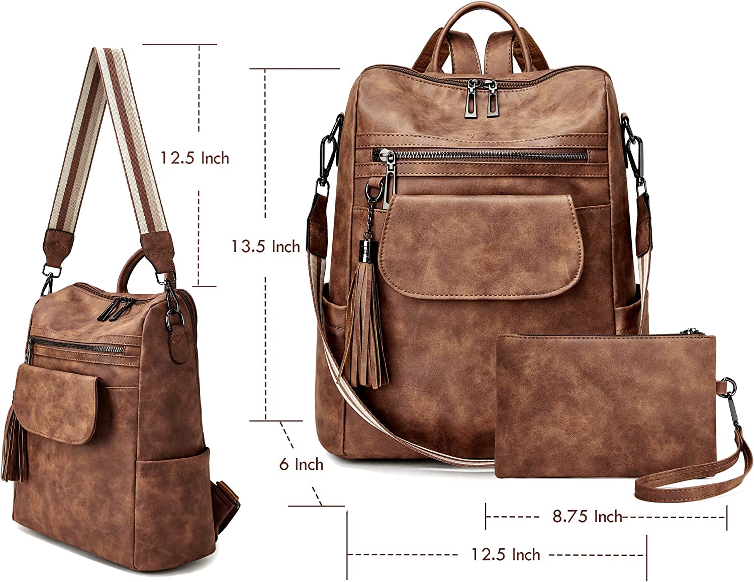 【HIGH-QUALITY MATERIAL】This backpack purse for women is made of high-quality water-resistant, anti-scratch and tear-resistant soft leather, metal accessories, canvas shoulder strap and fabric lining, all these details are fashionable and durable. and there is a cute tassel next to the front pocket.