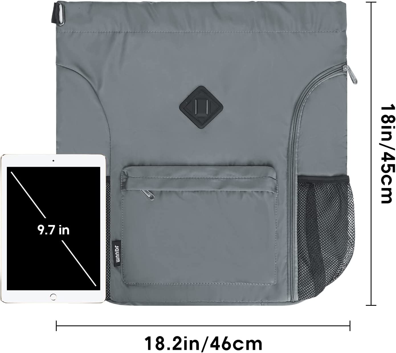 Large Capacity: WANDF drawstring gym bag measures 18.2in x 18in , which enough to hold your most sport gears or daily essentials. It also has 1 interior wall zip pocket and 2 interior wall pockets inside the main compartment to perfect classification for your items.