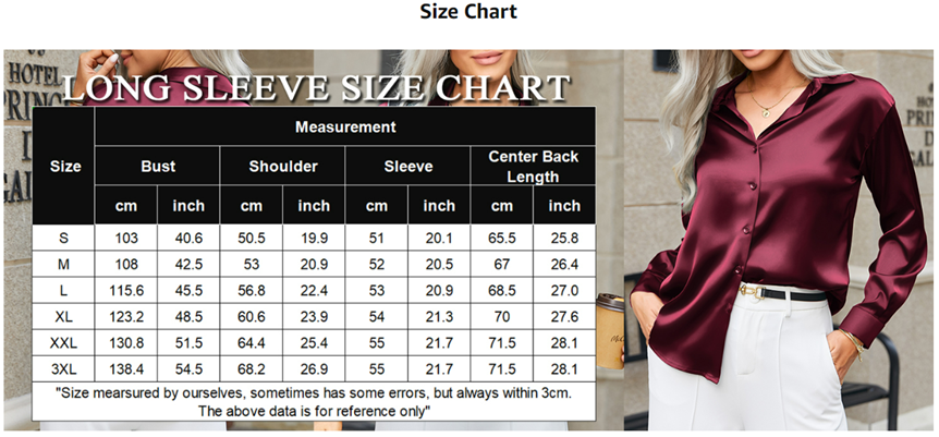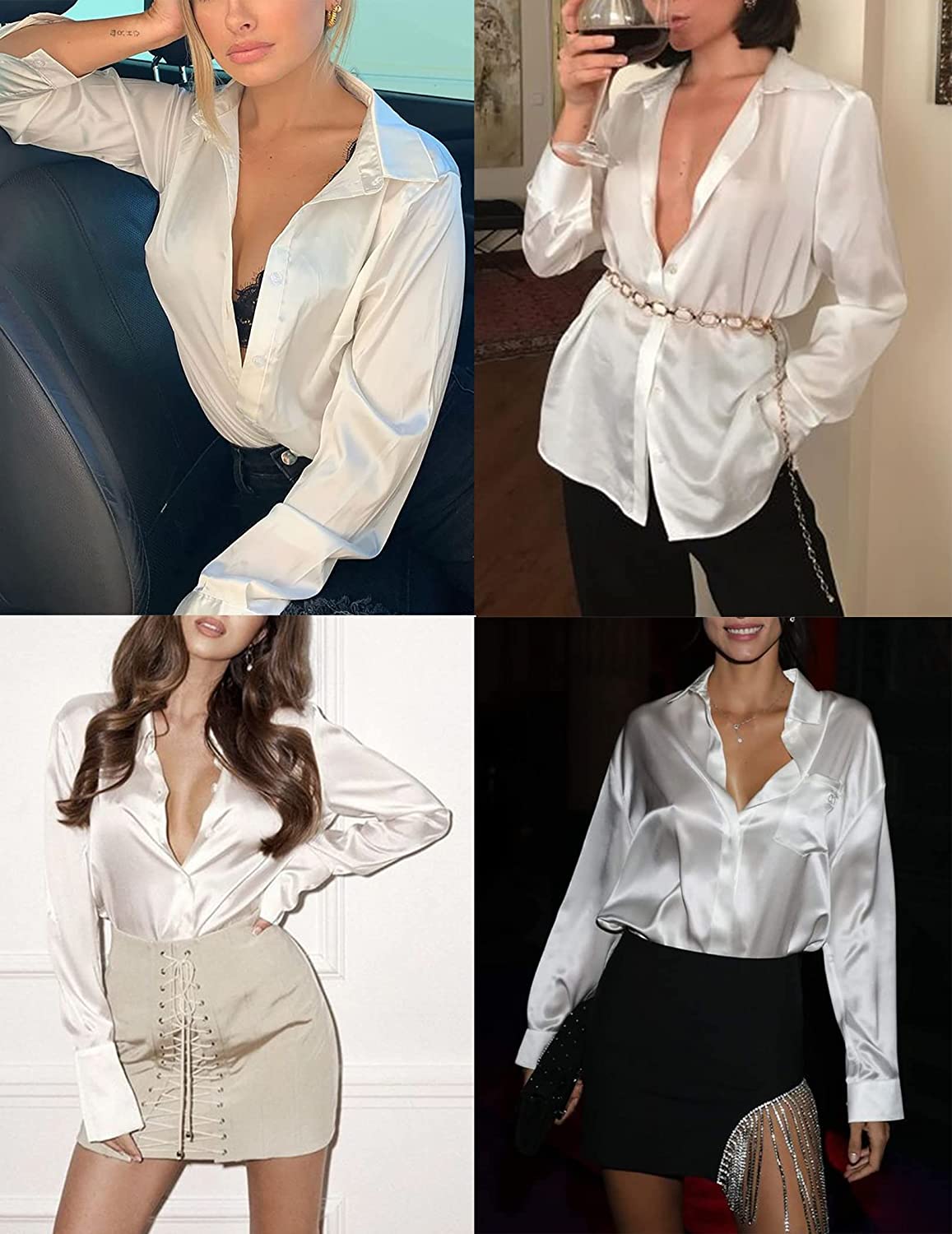 • Classic Design - Never goes out of style. Satin silk button down shirts, long sleeve blouses, dressy V Neck tops, casual loose fit work shirt, turn down collar business blouse, drop shoulder tunic tops