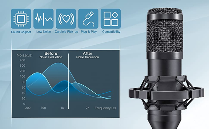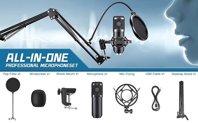 • USB Microphone, This Condenser Microphone has been designed with professional sound chipset,16MM mic capsule design delivers rich, detailed sound. Supports sample rates up to 192kHz/24bit. Wide frequency response, and high sound pressure level enable the mic to obtain more real and delicate sound.