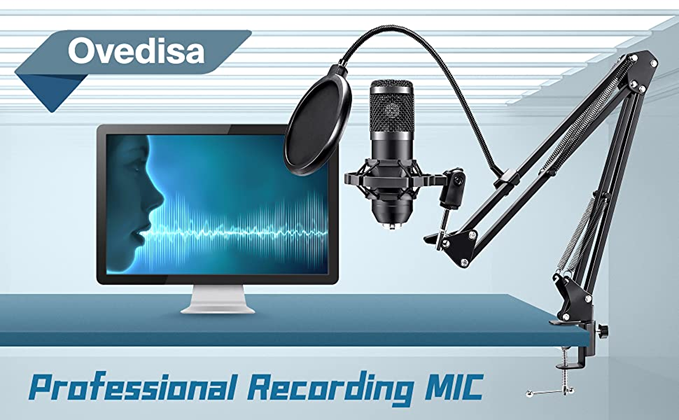 ovedisa USB Microphone, Professional 192kHz/24Bit Plug & Play PC Computer Condenser Cardioid Mic Kit with Sound Advanced Chipset, for Streaming, Podcast, Studio Recording and Games