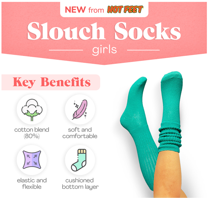 • Exciting Back-to-School Gift to Kids: Looking for a better gift than a toy? Click 'Add to Cart' & let little girls look forward to going back to school wearing our kids slouch socks!