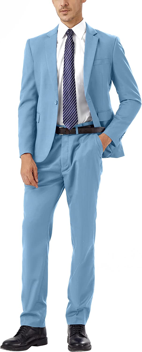 WEEN CHARM Men's 2 piece One Button Slim Fit Suits are made of high quality fabric, great for wedding, graduation ceremony, and meeting.