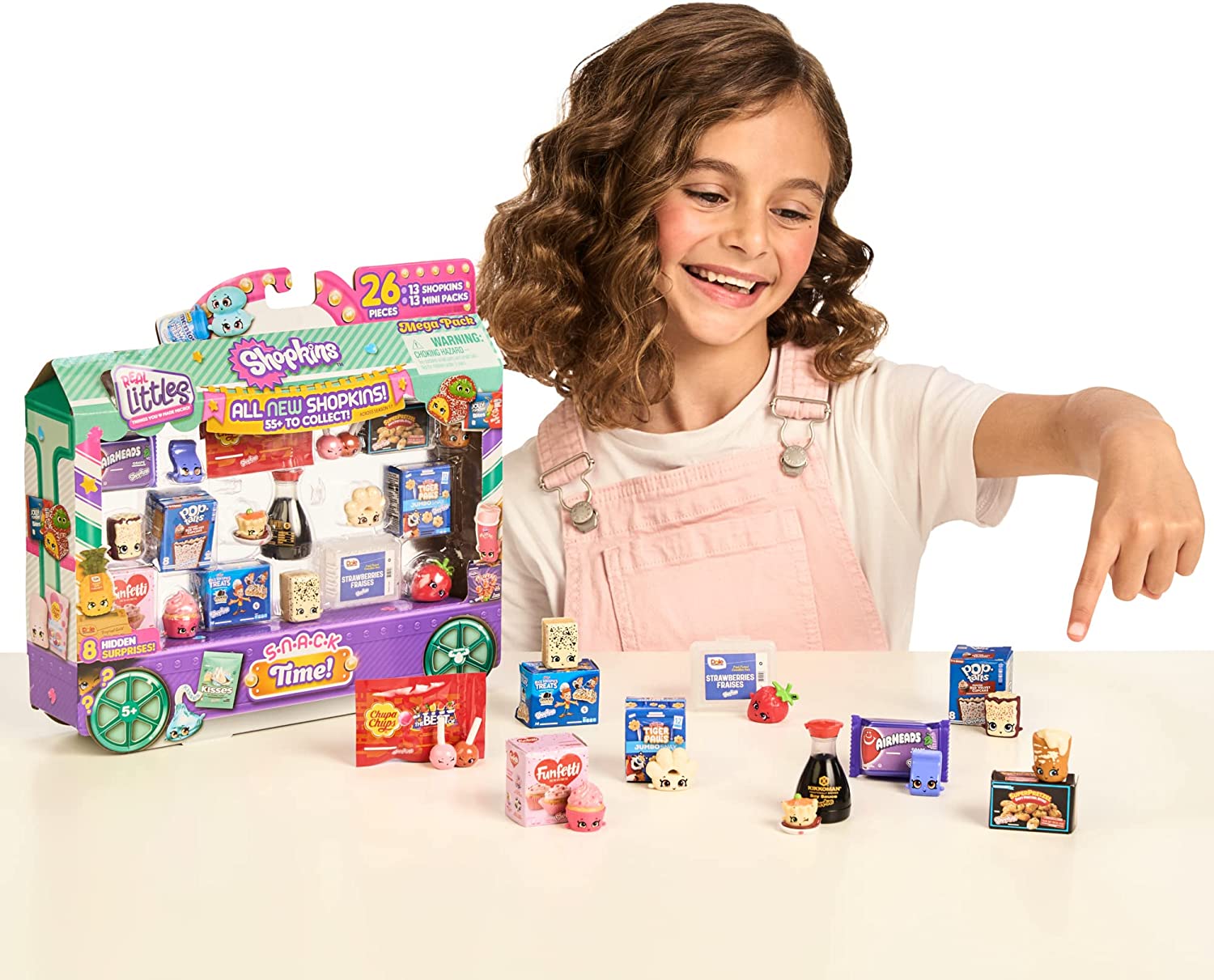 Inside the Snack Time Mega Pack, girls and boys will find 26 Pieces: 13 branded Mini Packs and 13 Shopkins plus a Collector's Guide.