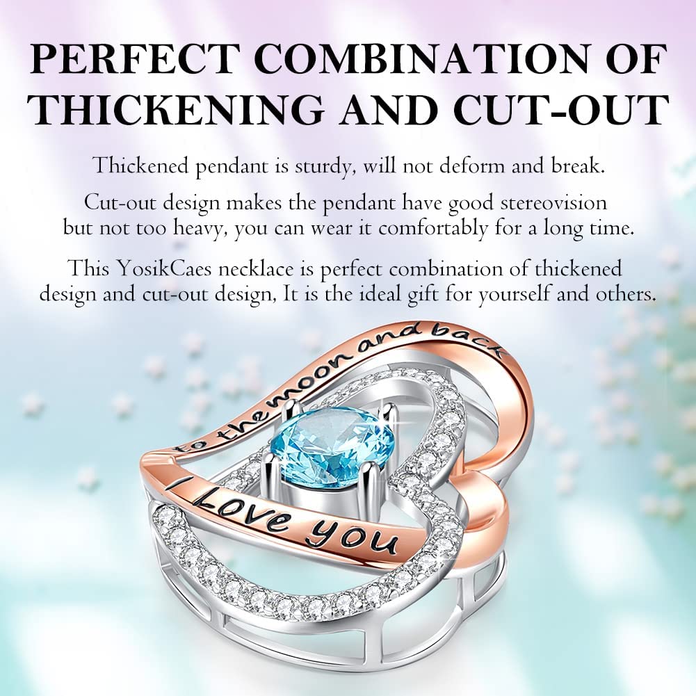?【EXQUISITE 925 STERLING SILVER NECKLACE】 Birthstone double heart pendant size: 1.02" X 0.80" X 0.27" | weight: 0.20 oz | chain length: 18" + 2". This double heart birthstone necklace is made of 925 sterling silver and plated with 18k rose gold, which will not harm your soft skin, while the color combination of silver and rose gold is designed to be stylish in its simplicity.