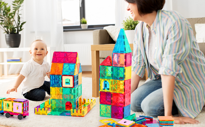 By fitting together dozens of vibrantly colored magnetic building tiles in unique patterns, your child can construct anything they imagine. From sky scraping castles to speedy cars to abstract sculptures, unlock the endless potential of your child’s creative and constructive abilities with Anbalulu!. Our Magnetic blocks help children develop STEM skills needed to do science, mathematics, and engineering and efficiently use technology.